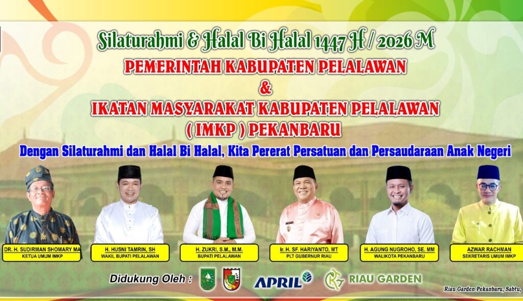 Pekanbaru, Faktacepat.id – Ikatan Masyarakat Kabupaten Pelalawan (IMKP) bersama Forum Komunikasi Pimpinan Daerah (Forkopimda) Negeri Seiya Sekata akan menyelenggarakan kegiatan Halal Bihalal dalam rangka Idul Fitri 1447 Hijriah. Acara tersebut juga dirangkaikan dengan prosesi pelepasan calon jemaah haji asal Pelalawan yang berdomisili di Pekanbaru. Kegiatan dijadwalkan berlangsung pada Sabtu, 18 April 2026 pukul 19.00 WIB…