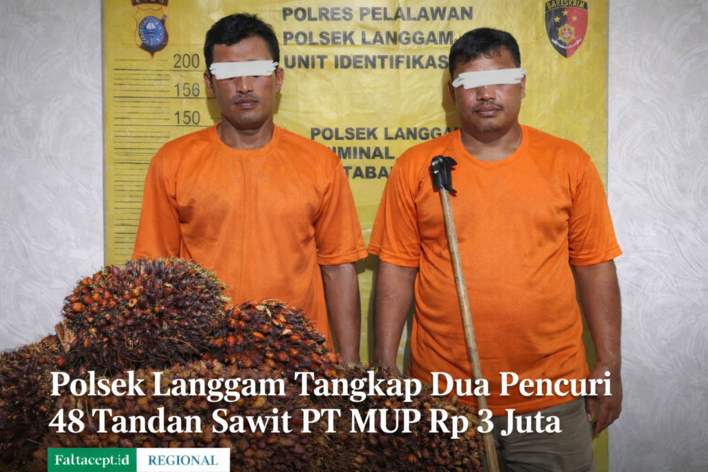 Pelalawan, Faktacepat.id – Personel Polsek Langgam, Polres Pelalawan, bergerak cepat mengungkap kasus pencurian buah kelapa sawit milik PT Mitra Unggul Pusaka (MUP). Dua pria berhasil diamankan setelah diduga mengambil puluhan tandan sawit dari area perkebunan perusahaan. Kasus ini terungkap usai petugas keamanan perusahaan mencurigai sebuah mobil bermuatan sawit yang keluar dari areal kebun pada Senin malam,…