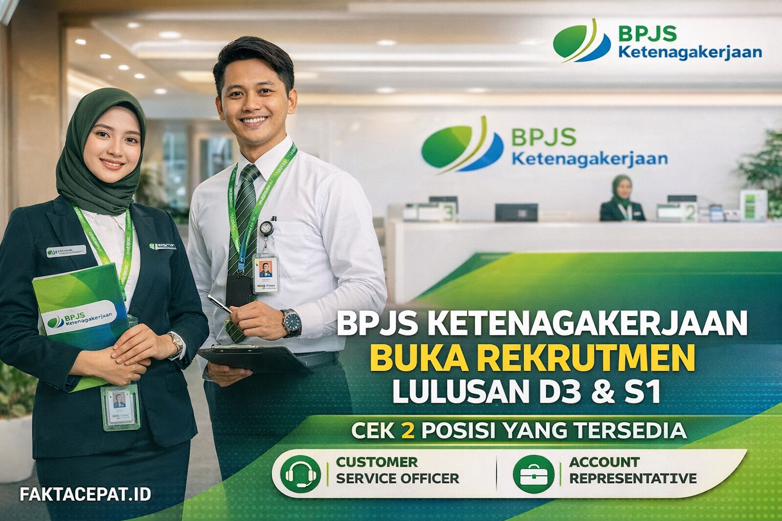 JAKARTA, Faktacepat.id – BPJS Ketenagakerjaan membuka kesempatan berkarier bagi lulusan D3 dan S1 melalui rekrutmen pegawai tetap untuk dua posisi, yakni Customer Service Officer dan Account Representative Perwakilan. Pendaftaran dibuka secara online pada 11-15 April 2026.