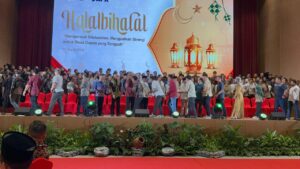 Acara halal bihalal tersebut berlangsung penuh kehangatan dan menjadi ajang mempererat hubungan antara pemerintah, dunia usaha, dan seluruh pemangku kepentingan di Kabupaten Pelalawan.