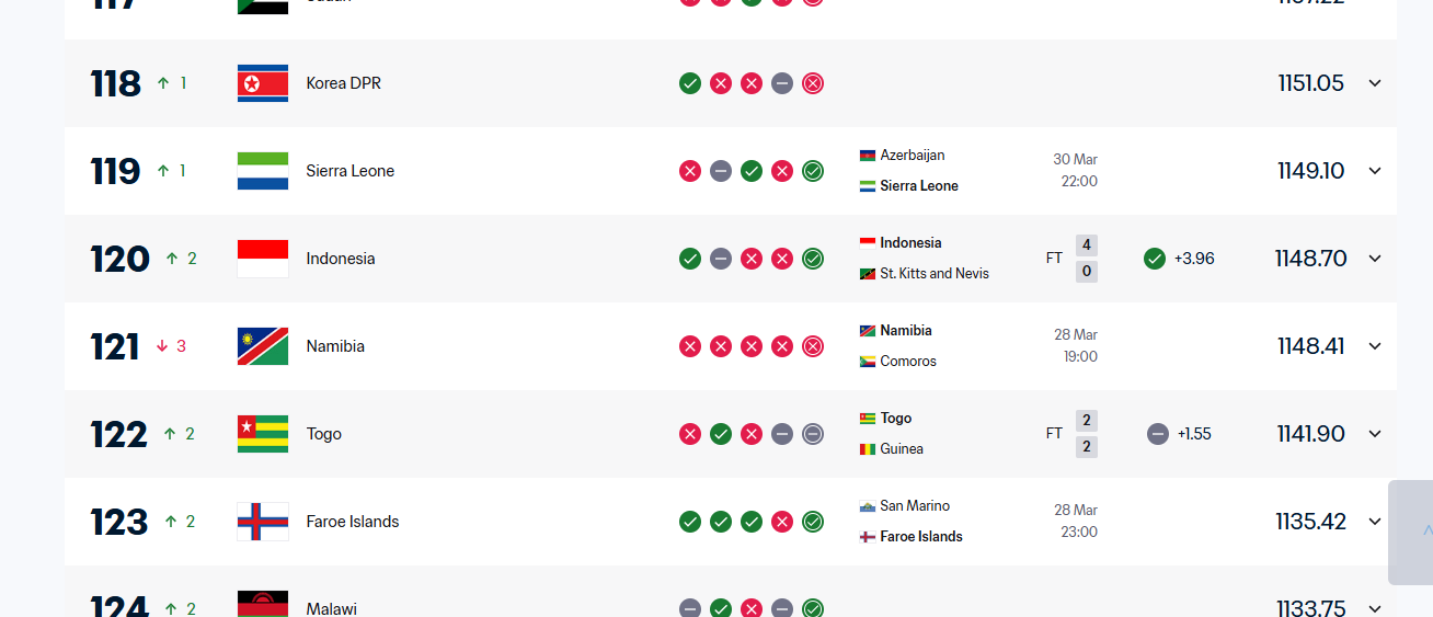 Hasil tersebut berdampak langsung pada posisi Indonesia di ranking FIFA. Tim asuhan John Herdman kini menempati peringkat ke-120 dunia dengan koleksi 1.148,70 poin.