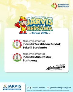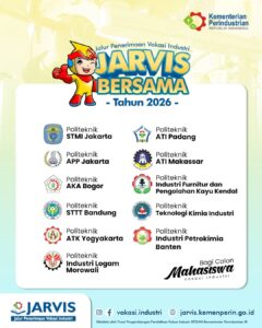 Program Jarvis Bersama 2026 merupakan jalur seleksi penerimaan untuk pendidikan vokasi di bawah naungan Kementerian Perindustrian, meliputi Politeknik/Ak serta SMK SMAK/SMTI.