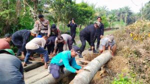 Polsek Ukui bersama pemerintah setempat serta tokoh agama dan masyarakat tempatan kelakukan kegiatan perbaikan jembatan jalan sinduan, kelurahan Ukui Satu, Kecamatan Ukui, Kabupaten Pelalawan.