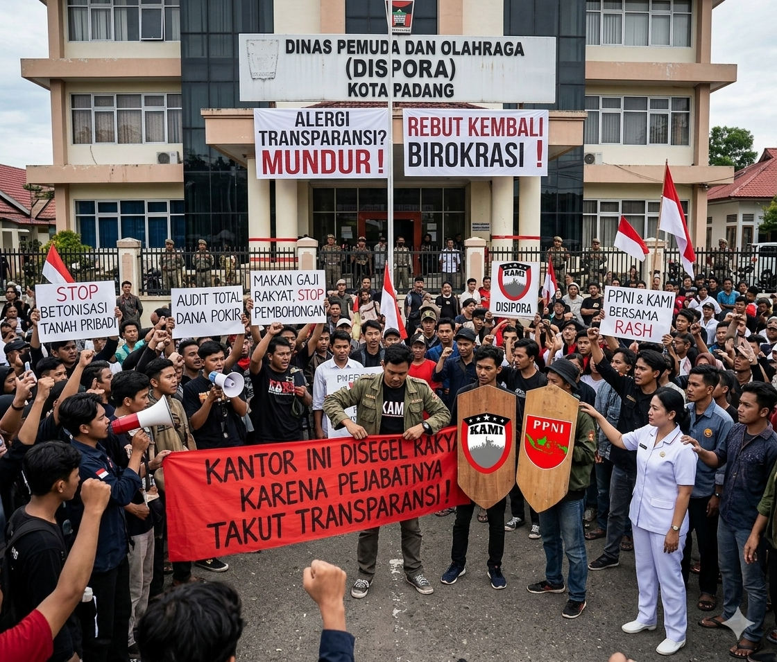 Padang, Faktacepat.id – Gelombang tuntutan terhadap transparansi dan profesionalisme di lingkungan Pemerintah Kota Padang mencapai puncaknya. Besok, Senin (16/03), koalisi besar yang terdiri dari Rumah Aktivis Sejahtera (RASH), Komunitas Aktivis Muda Indonesia (KAMI) Kota Padang, dan Pemuda Peduli Negeri Indonesia (PPNI) akan turun ke jalan melakukan unjuk rasa di kantor Dispora Kota Padang.